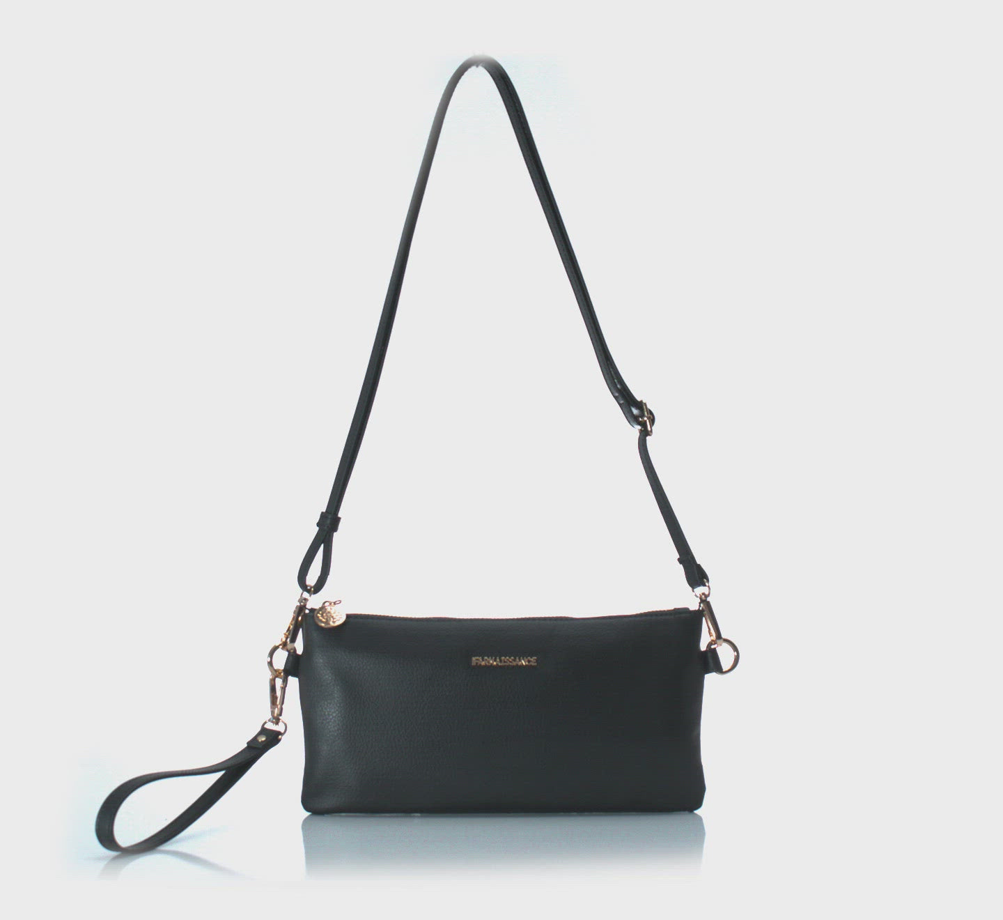 長さの異なる2種類のストラップが付属するクラッチバッグです。軽くて柔らかなVegatex(ヴィガテックス)アップルレザー製で、必要最低限のものを持ち歩くのにぴったりなサイズ感。お財布ポシェット、ウォレットバッグとしてもお使いいただけます。